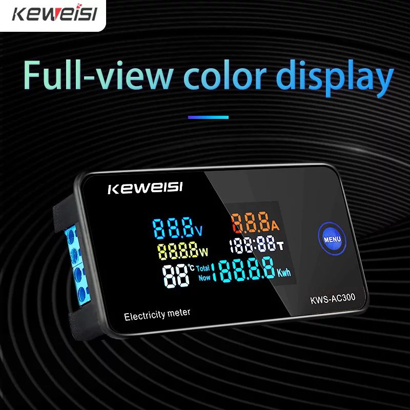 Modelo: AC300-100A 1.Tensão: AC50-300V atual: 0-100a potência: 0-30kw capacidade: 0,01-19999kwh tempo: 0-200h temperatura: -10 ° c a 99 ° c 7, o pacote inclui: 1 * 1 x medidor 、 1 x 100a shunt / Bobina CT 、 1 * manual do usuario Clique no botão do menu no painel para ver a energia elétrica atual e energia elétrica cumulativa. Energia elétrica e método de restauração de tempo: pressione e segure o botão de menu por 5 segundos, o número na área de tempo piscará, em seguida, clique no botão para selecionar o tempo, energia elétrica atual recuperação e energia elétrica cumulativa. Quando o número piscar, clique duas vezes no botão para reiniciar. Pressione e segure o botão por 5 segundos para salvar as configurações